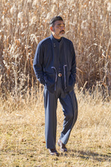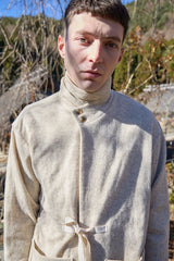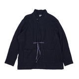 衿のデザインが特徴的なシャツブルゾン。ウエストは紐で留める仕様で、日本らしさを感じられるデザイン。