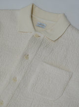 凹凸のある生地。縮絨をかけているため防寒性も高く、冬場のレイヤードにも活躍します。