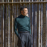 高級な光沢のあるウールを使用した長袖ハイネック。薄手ながらも暖かく、インナーとして最適。ジャケットやニットの下に重ねてもごわつかず、きれいなシルエットを保ちます。デイリーからオフィス、フォーマルまで幅広く活躍する一着です。