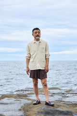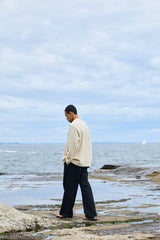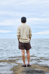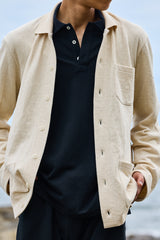 - 表面に綿麻糸を使用し、裏面は綿100%を使用したダブルフェイス。裏面を綿にすることで肌さわりが良く、春の肌寒い時期から秋まで着られます。