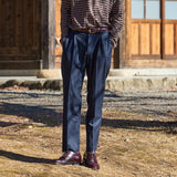 緩やかに絞られたテーパードシルエットが、すっきりとした上品な印象を与えます。生地には、日本国内に数台しか現存しない希少な編み機で編み上げた特別なジャージー素材を採用。一般的なジャージー素材とは異なり、伸縮性を抑えながらもしっかりとしたハリを持たせた仕上がりが特徴。日本製ならではの縫製とこだわりのディテールが光る一本。カジュアルからキレイめまで幅広く対応し、スタイルを選ばずに着回せる大人のためのパンツです。