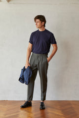 - 胸元にはフラップポケットを付け、一枚で着た時にも高級感のあるデザイン。